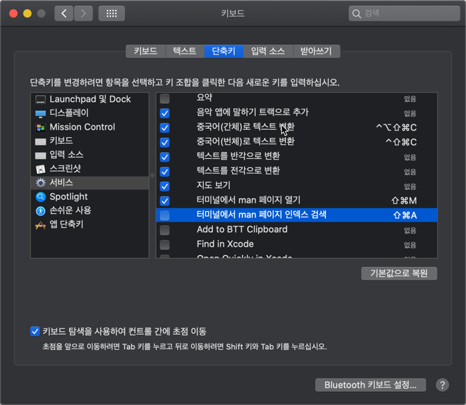그러나 모하비 이후로 OS에서 이 단축키를 선점하여 터미널이 열리게 되는 문제가 있다.